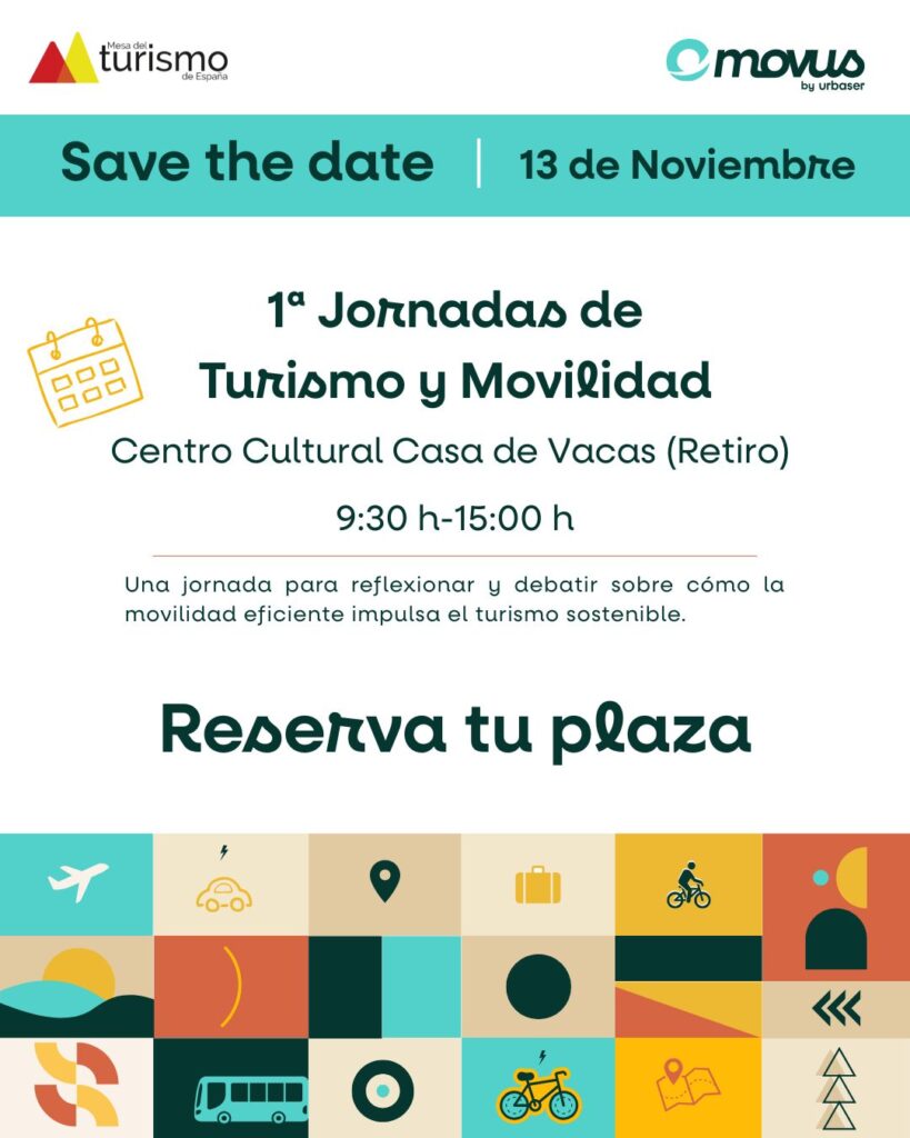 El próximo 13 de noviembre de 2025, Madrid será el punto de encuentro de profesionales, empresas y entidades del sector turístico y de la movilidad en las 1ª Jornadas de Turismo y Movilidad Urbana, organizadas por Movus y la Mesa del Turismo de España.